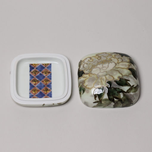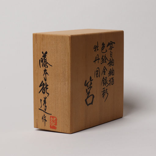 Covered Box with Colored Glazes, Overglaze Enamels, Gold and Silver on Seppaku Glaze, Peony Design