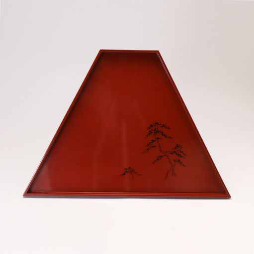 A set of 10 reddish brown Urumi lacquer tray in the shape of Mt Fuji